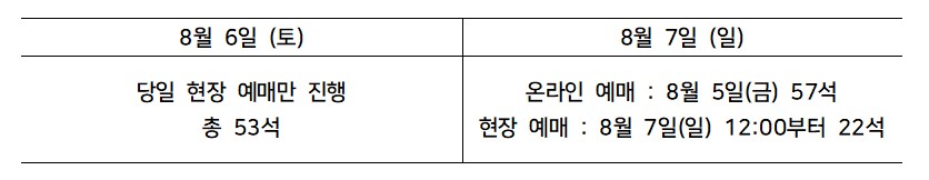 상기의 이유로 예매 좌석 수를 아래와 같이 축소하여 진행하오니 관객 여러분들의 너른 양해 부탁드립니다.