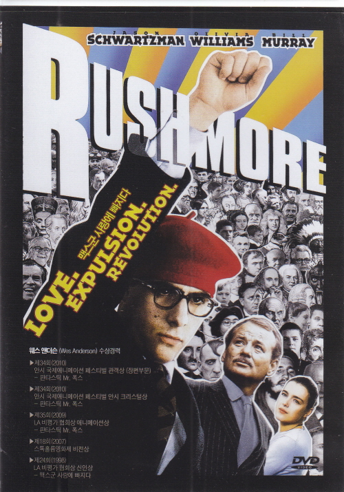 | 줄거리 | 문 사립학교 러쉬모어의 졸업반에 재학 중인 맥스 피셔(제이슨 슈왈츠먼 분)는 대단한 학생이다. 교내 신문과 학교 연감의 편집장이자, 프랑스 클럽, 체스 클럽, 천문학 클럽의 회장이고, 펜싱과 토론회 팀의 팀장이다. 또한 맥스 피셔 연극단의 설립자이며, 친히 극단을 위해 경찰의 부패나 도시의 폭력, 전쟁 등을 소재로 한 극본을 쓰고, 연출까지 맡고 있다. 그의 말에 따르면, 하바드 쯤이야 우습게 들어갈 수 있으니까, 옥스퍼드에 조기 입학을 신청해 놓은 상태다. 그렇지만, 동시에 그는 가장 형편없는 학생이기도 하다. 화려한 과외활동 뒤에는 바닥을 기는 교과 성적이 있고, 친구라고 할 만한 사람은 꼬맹이 더크(메이슨 갬블 분) 뿐이다. 부잣집 자제가 득시글거리는 러쉬모어에선 드물게 홀아비 이발사를 아버지로 둔 학생이기도 하다. 이런 맥스가 지나칠 정도로 과외활동에 집착하는 것은 러쉬모어를 너무나 자랑스럽게 여기고, 사랑하기 때문이다. 그런데, 맥스가 러쉬모어를 한층 더 사랑해야 할 이유가 생겼다. 그에게 진짜 사랑을 가져다 준 것이다. 상대는 러쉬모어의 초등학생을 가르치는 크로스 선생님(올리비아 윌리암스 분). 물론 그녀는 맥스를 좀 색다른 학생으로만 생각할 뿐 전혀 남자로서 취급하지 않지만, 맥스는 크로스 선생님의 사랑을 얻기 위해 모든 수단을 동원한다. 심지어는 학교 내에 그녀의 이름을 기리는 수족관을 건립하겠다고 나서기에 이른다. 수족관 건설 기금 마련을 위해 맥스는 블룸씨(빌 머레이 분)를 찾아간다. 자신의 쌍둥이 아들을 러쉬모어에 보내고 있는 블룸은 철강 재벌로, 러쉬모어를 위해서 상당한 액수의 기부금을 내고 있었다. 맥스의 열의에 반했는지, 블룸은 얼마간의 돈을 선뜻 내주었고, 이후 두 사람은 친구가 되는데... |